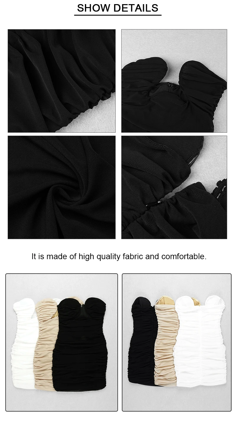This strapless mini dress, made from cotton with medium stretch, features a solid pattern and a slim fit. It is designed for comfort and style with a convenient zipper closure, ideal for a chic and flattering look above the knee.