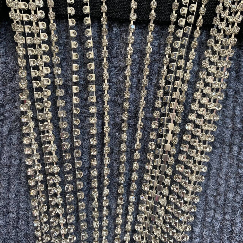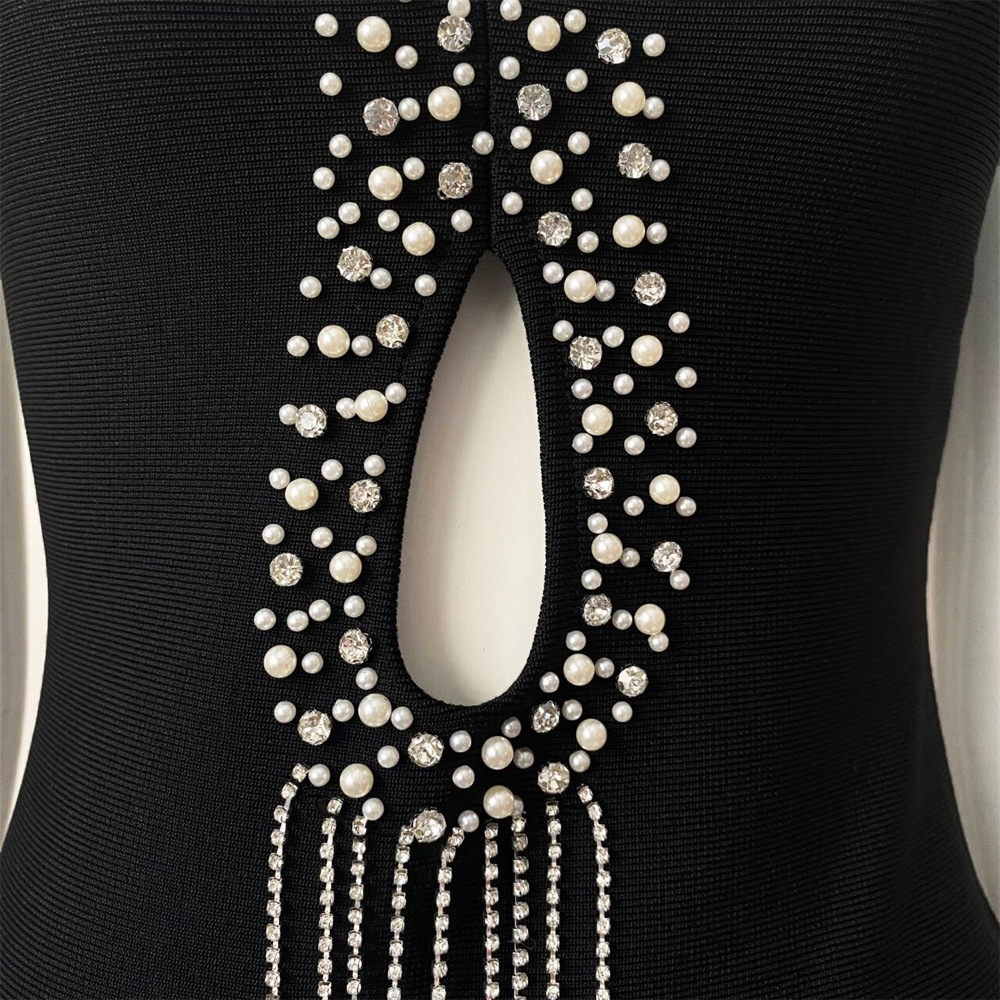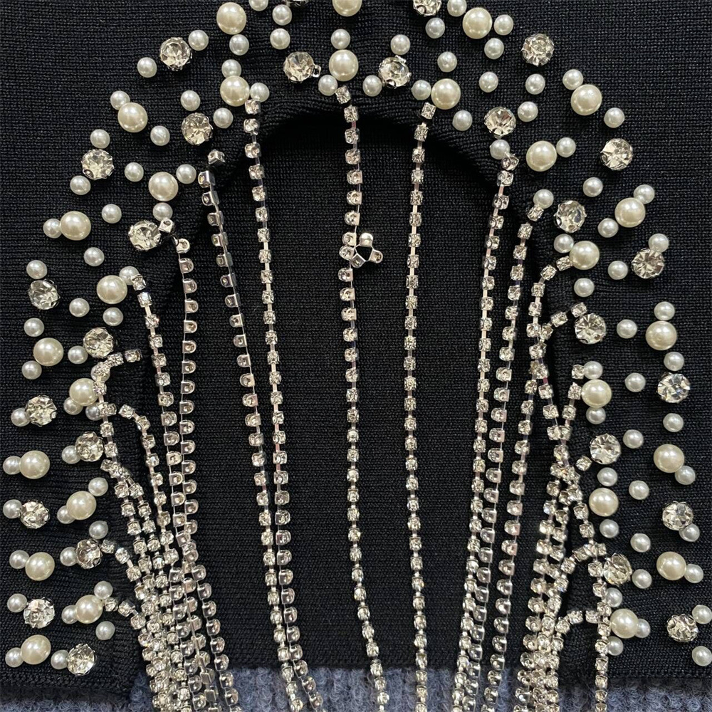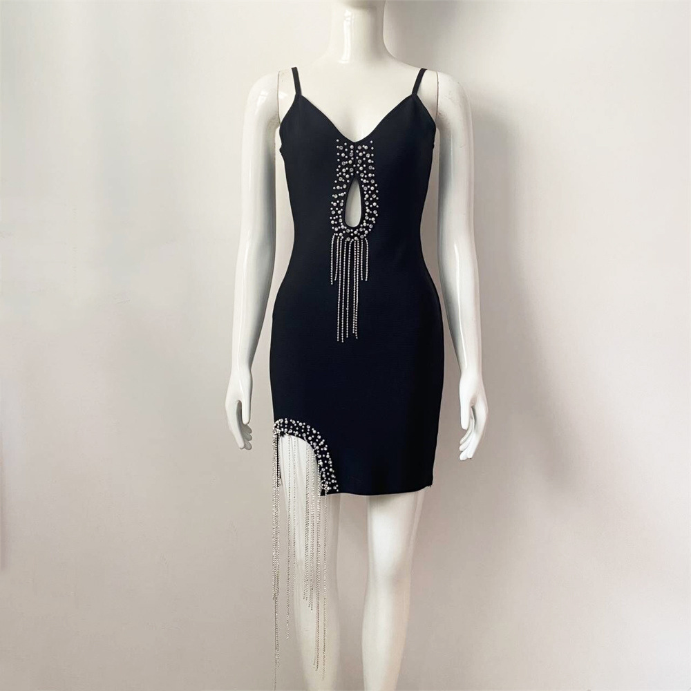 The Rhinestone Tassel Suspender Hip Dress is a fashion masterpiece, made with rich fabrics and stunning embellishments that showcase your confidence and grace. The trendy tassels and shimmering rhinestones that dance with every step are a playful touch to this luxe garment.