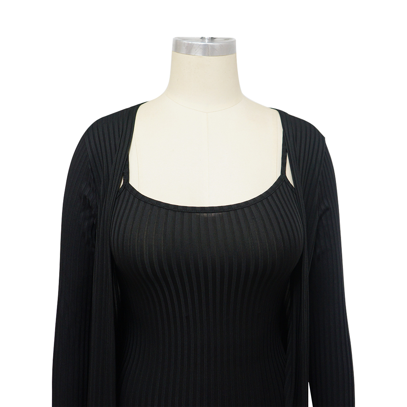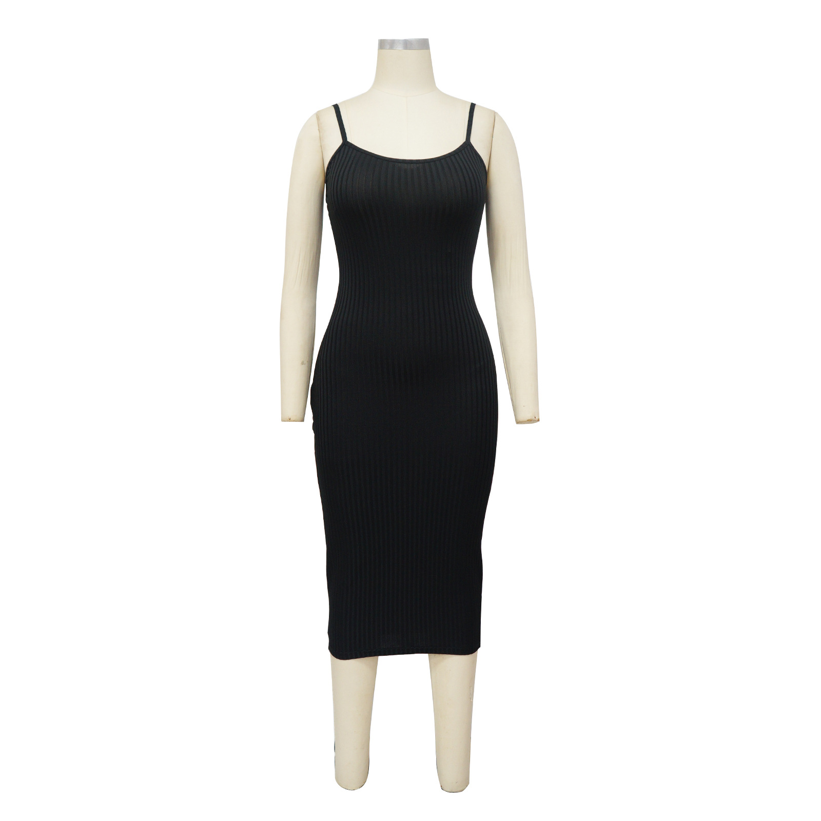 Fit: Slim Fabric: Polyester Pattern: Solid Element: Rib Neckline: Spaghetti Strap Sleeve Type: Regular Sleeve Length: Long Sleeve Product Type: Bodycon Dress, Cami Dress Dress/Skirt Length: Midi Season: Spring/Fall