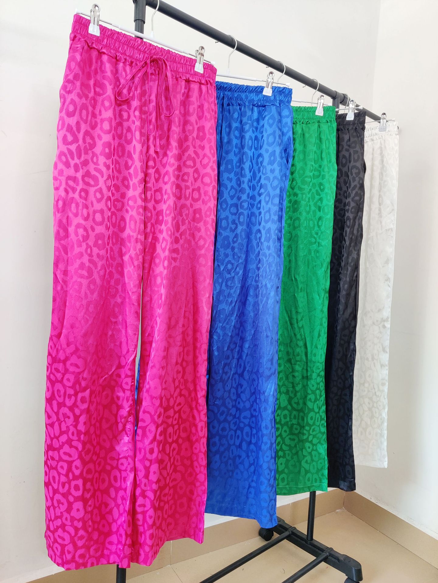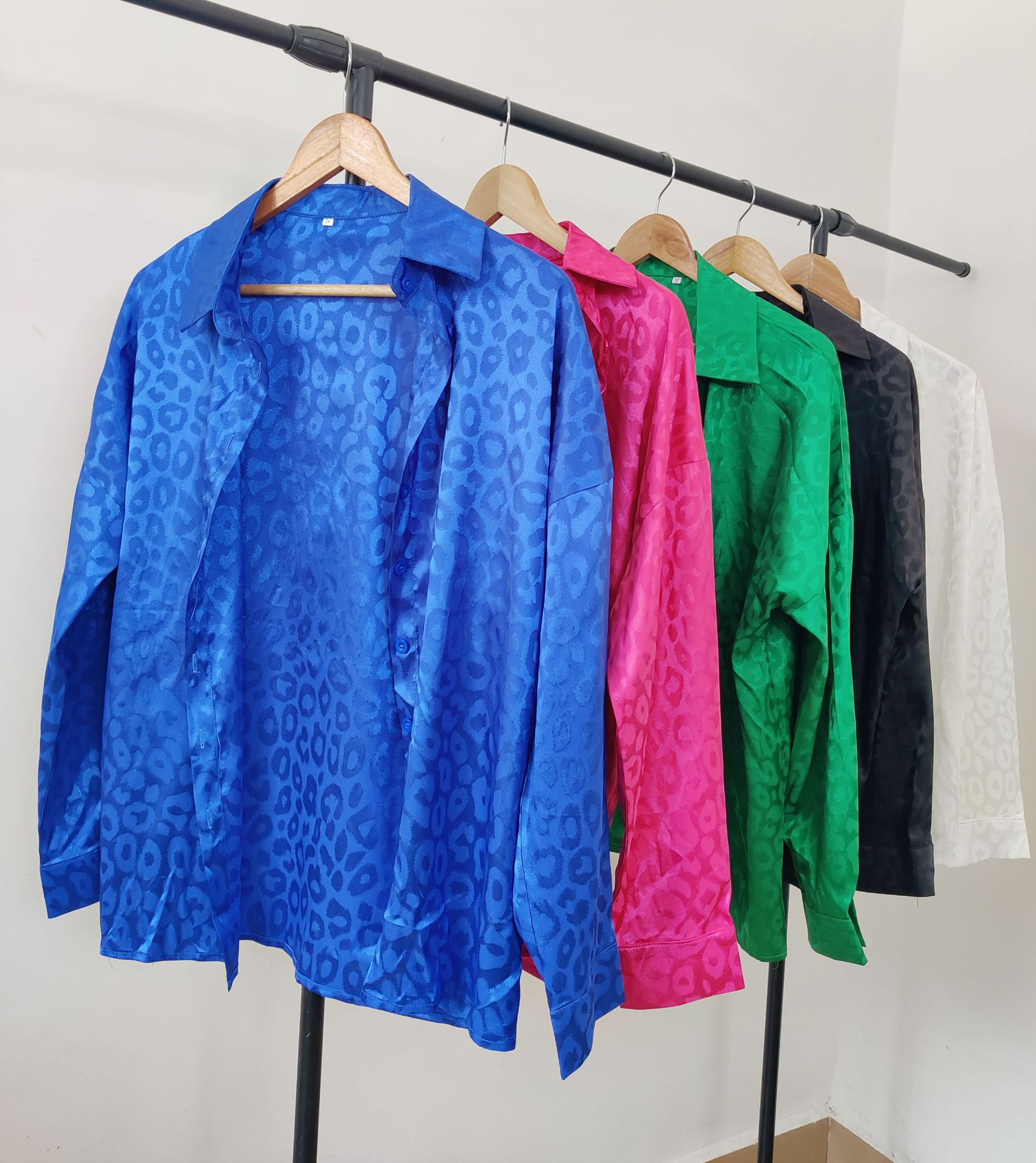 This casual spring/fall set, designed for a loose fit, is crafted from polyester and features a trendy animal print pattern. The collared neckline and long sleeves are complemented by button details, jacquard texture, and practical pockets. It includes full-length pants and a regular-length top, making it versatile and comfortable for cooler seasons.